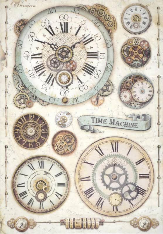 Stamperia Rice Paper A4 – Voyages Fantastiques – Clock – DFSA4838