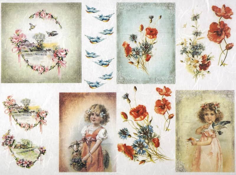 Rice Paper – Girl, Birds, Poppy